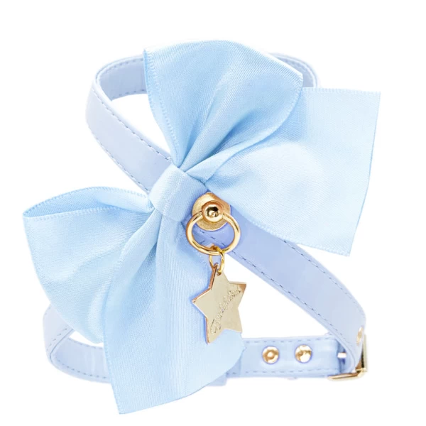 Het romantische harnas is gemaakt van zeer zacht en resistent nappaleder eco-leer en gedecoreerd met een 45 mm brede satijnen strik