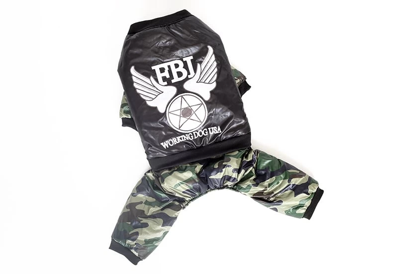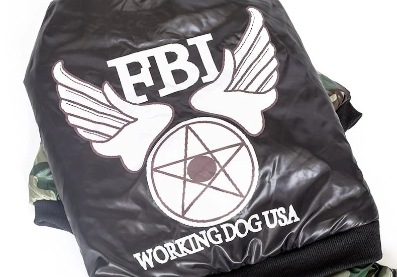 Super stoer en warm hondenpak voor de grotere tot grote honden met de letters FBI van het merk Hoopet