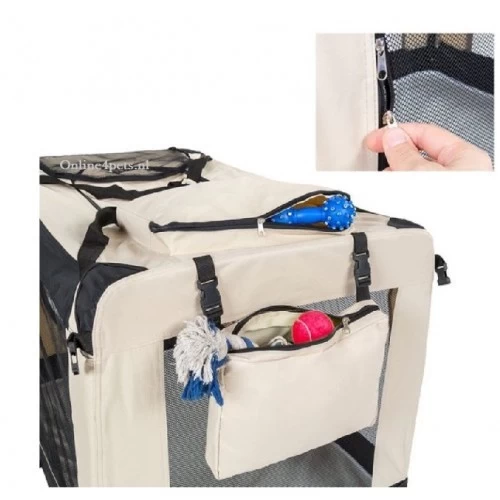 Inclusief handige opbergtas waar u spulletjes in mee kunt nemen (dit is geen tas waarin de gehele bench past) Inclusief lekkere zachte vacht voor in de bench om op te liggen