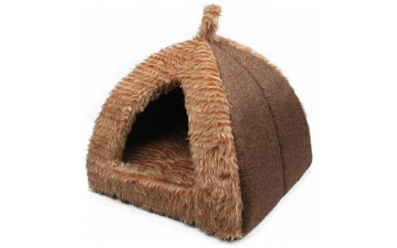 Dit kleine instaphuisje van Starline is een knus hondenmandje voor uw kat of klein formaat hond. Deze mand heeft de vorm van een tent en heeft een hoogte van 30 cm. De kleur van het instaphuisje is bruin met een zachte vachtstof op de voorkant. Er ligt een dik en zacht kussen in waar uw kat of trouwe viervoeter heerlijk op zal liggen.