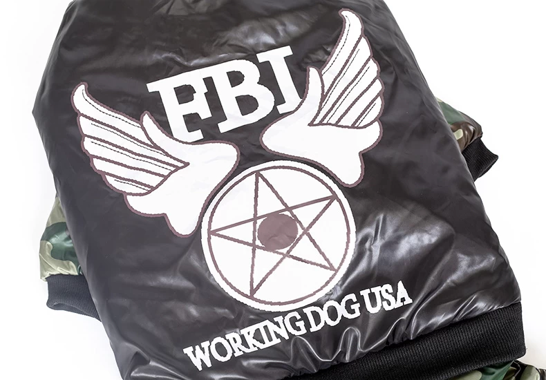 Super stoer en warm hondenpak voor de grotere tot grote honden met de letters FBI.