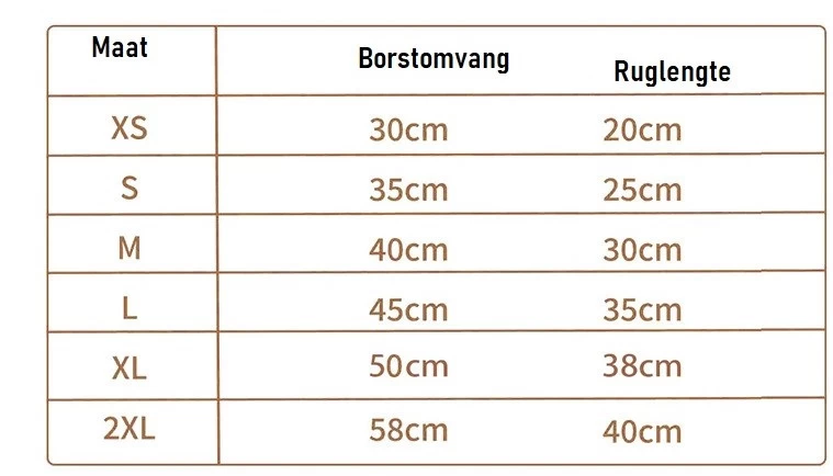 Tip: Meet eerste de borstomvang/ruglengte van Uw viervoeter op voordat U besteld.