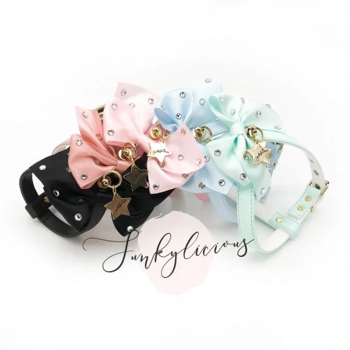 Deze prachtig harnas BigBow is gemaakt van imitatieleder en versierd met een grote satijnen strik met Swarovski-kristallen.
