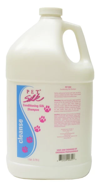 Maak de vacht met lauwwarm water nat en breng daarna Pet Silk Conditioning Silk Shampoo gelijkmatig op. De shampoo goed in masseren en laten schuimen. Uitspoelen en de behandeling herhalen. Hierna dient de vacht grondig te worden nagespoeld. De vacht behandelen met Pet Silk Conditioning Silk Rinse om de vacht te ontwarren, conditioneren, hydrateren en laten glanzen. Voor het beste resultaat eindigen met een van de Pet Silk finishing producten.