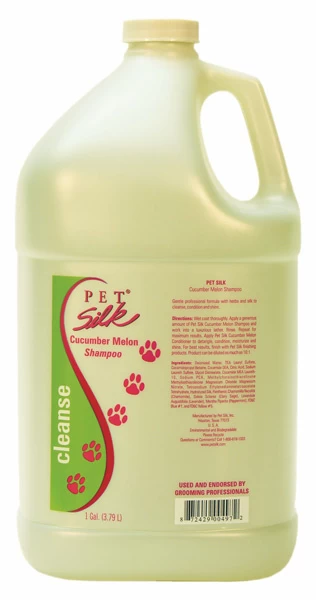 Maak de vacht met lauwwarm water nat en breng daarna Pet Silk Cucumber Melon Shampoo gelijkmatig op. De shampoo goed in masseren en laten schuimen. Uitspoelen en de behandeling herhalen. Hierna dient de vacht grondig te worden nagespoeld. De vacht behandelen met Pet Silk Cucumber Melon Conditioner om de vacht te ontwarren, conditioneren, hydrateren en laten glanzen. Voor het beste resultaat eindigen met een van de Pet Silk finishing producten.