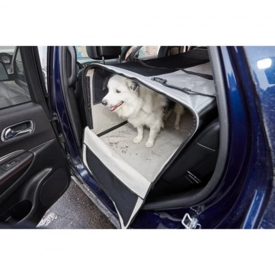 Deze bijzondere reisbench voor de hond bevestig je met het ISOFIX systeem in de auto, net zoals bijvoorbeeld een kinderzitje. Hierdoor is de hond veilig tijdens het rijden in de auto. De bench is eenvoudig op te zetten en kun je net zo gemakkelijk weer inklappen. Je draagt de bench gemakkelijk mee in de handige draagtas die inclusief is. De hondenbench heeft aan beide kanten een ingang met een stevige ritssluiting. Aan de voorzijde vindt je diverse ramen van gaas die geopend kunnen worden met een ritssluiting zodat je je huisdier kunt bereiken terwijl de auto rijdt. Aan de voorzijde bevindt zich een opbergvakje voor bijvoorbeeld iets lekkers voor de hond. Door het gebruik van de bench bescherm je het interieur van de auto tegen vuil en vlekken.
