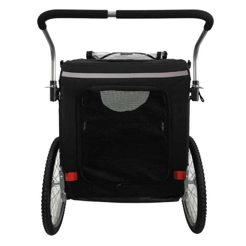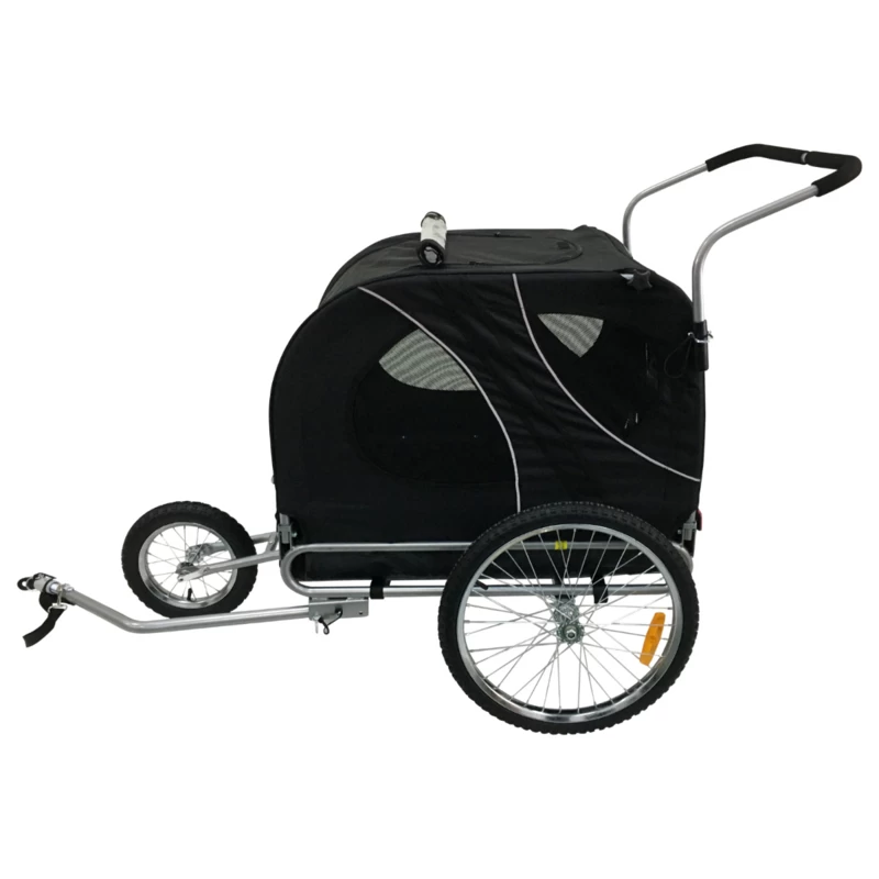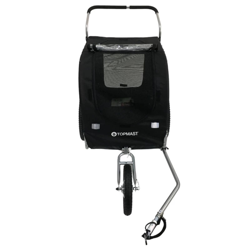 De Easy Flow van Topmast is dé fietskar voor alle standaard en middelgrote honden. Deze fietskar wordt bovendien geleverd met een extra voorwiel en een Jogger Frame, zo kun je ervoor kiezen om in plaats van een fietstocht een heerlijke wandeling met je hond te gaan maken. Aan zowel de voor als de achterkant van de fietskar zit een ingang, zodat je zelf kunt bepalen via welke kant je jouw hond naar binnen laat. De ‘deur’ aan de voorkant is zelfs op twee verschillende hoogtes open te ritsen zodat zowel grote als kleine honden veilig naar buiten kunnen kijken. Geniet van het buitenleven!