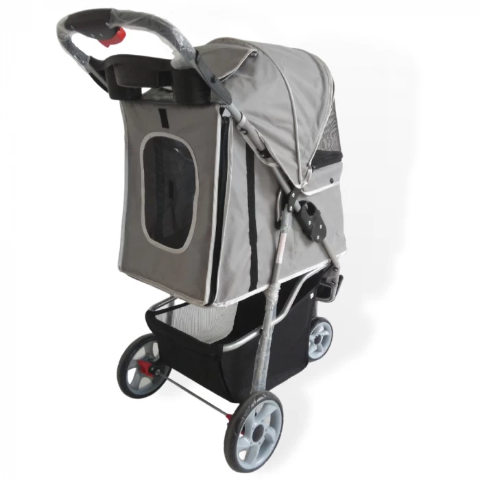 Een fijne en makkelijk hondenbuggy met drie wielen in de kleur Grijs.
