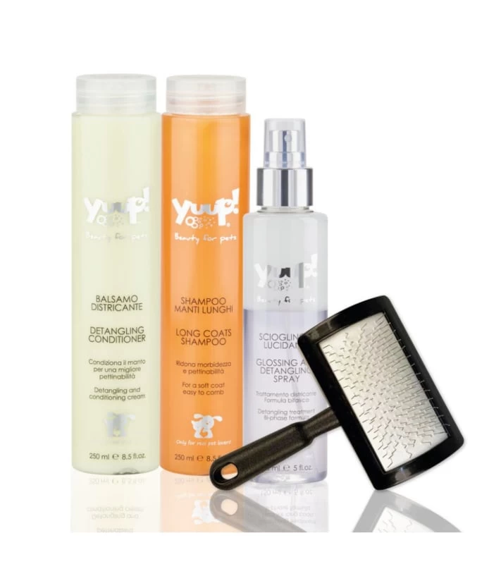 Specifieke kit voor de verzorging en schoonheid van lange vachten